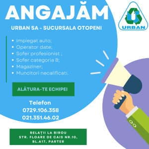 S.C. URBAN S.A BUCURESTI – Sucursala Otopeni angajeaza: